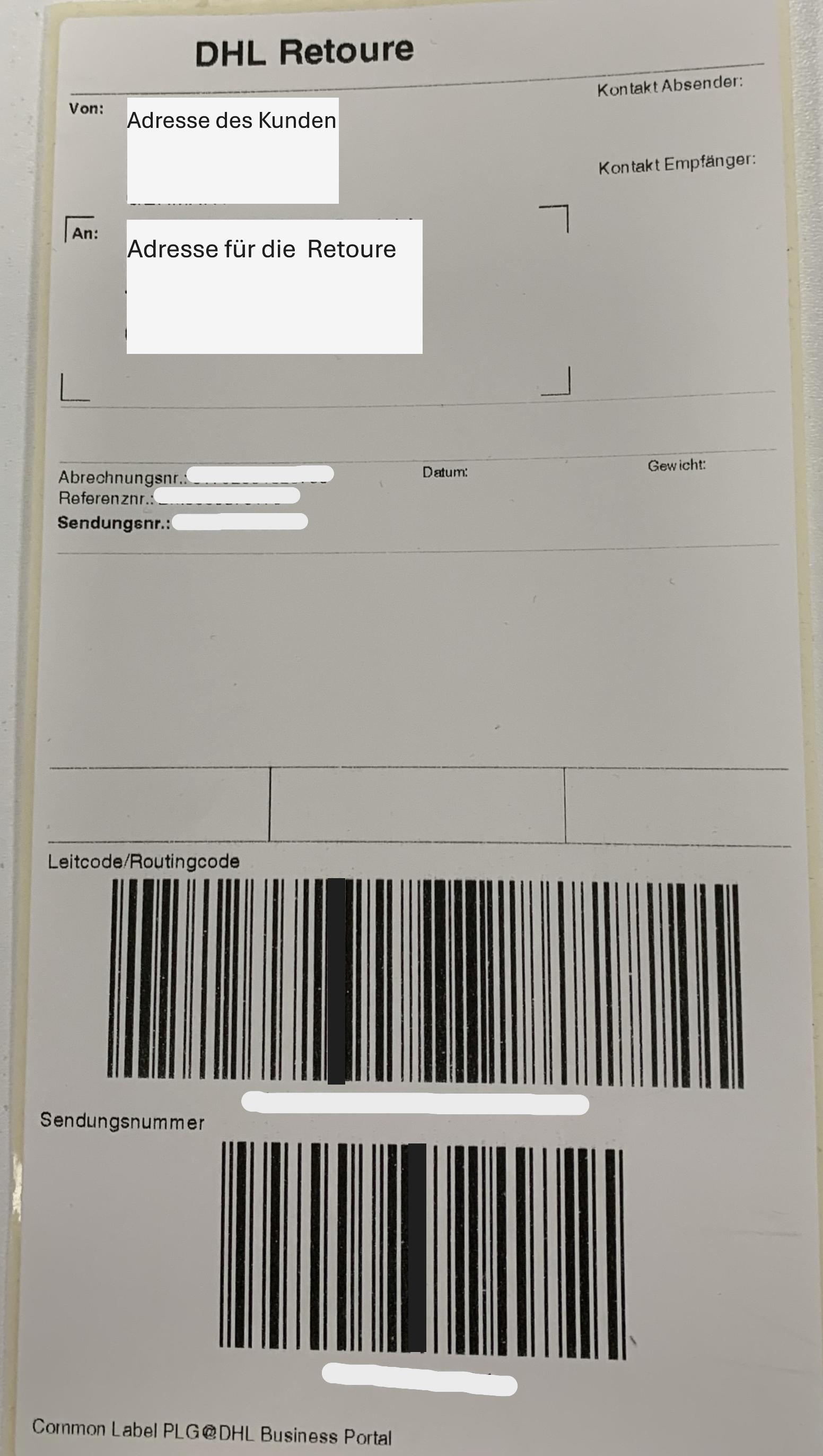 Empfehlung: Der Lieferschein sollte vom Retourenschein getrennt werden, damit er beim Endkunden verbleiben kann.