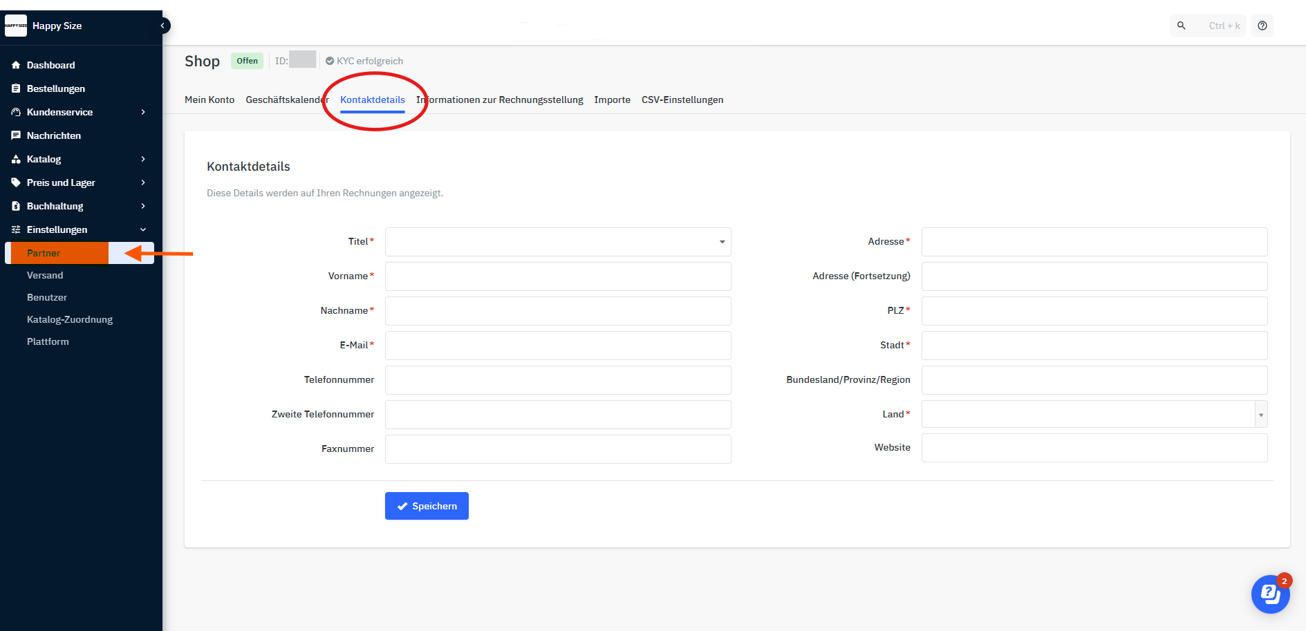 Bitte beachte, dass diese Angaben unbedingt ausgefüllt sein müssen, bevor du den KYC-Prozess beim Zahlungsdienstleister abschließt, da dieser sich die benötigten Informationen aus diesem Bereich im Backend zieht.