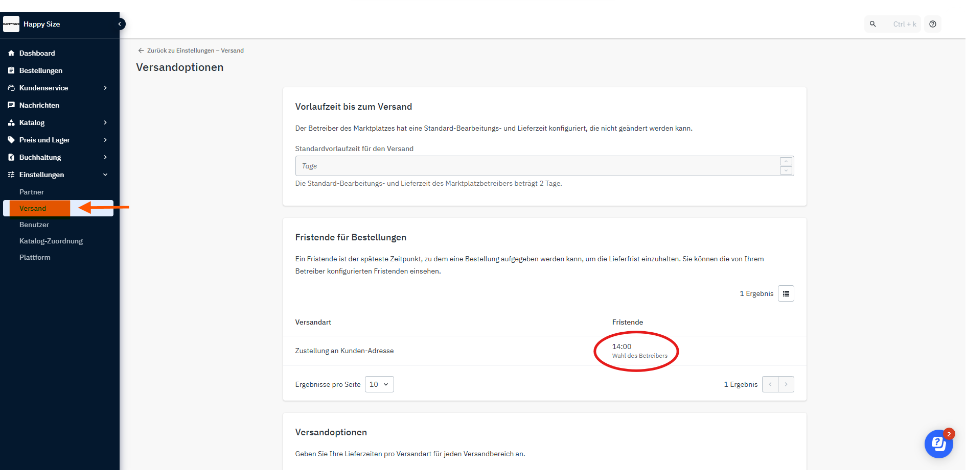 Zudem ist hier die Lieferzeit hinterlegt. Aufträge müssen innerhalb von 0-2 Tagen als versandt gemeldet werden. Und innerhalb von 2 bis 4 Tagen beim Endkunden sein.