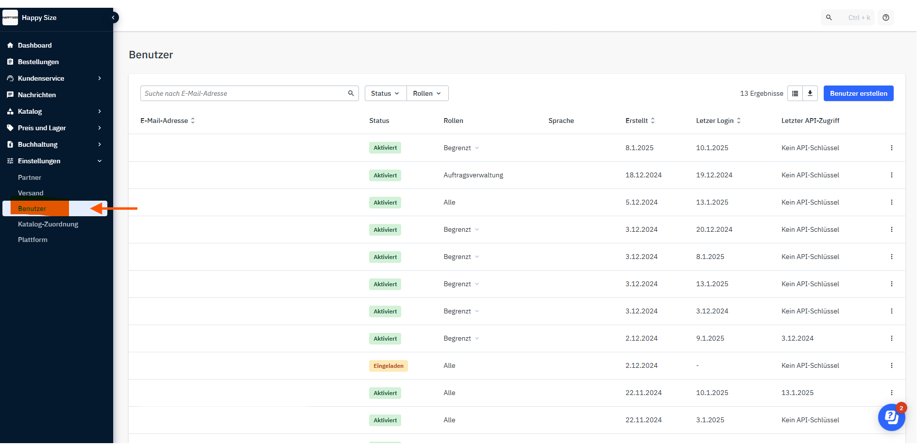 Im Bereich "Benutzer" kannst du alle Nutzerkonten einsehen und verwalten. Eine genaue Anleitung dazu findest du im Artikel Nutzerverwaltung.