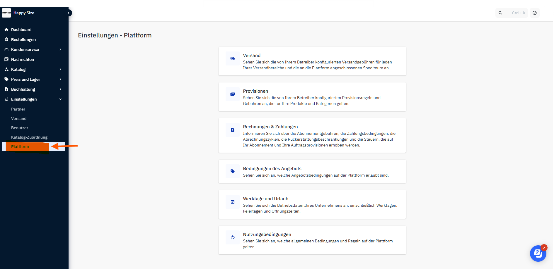Klicke auf: Einstellungen > Plattform