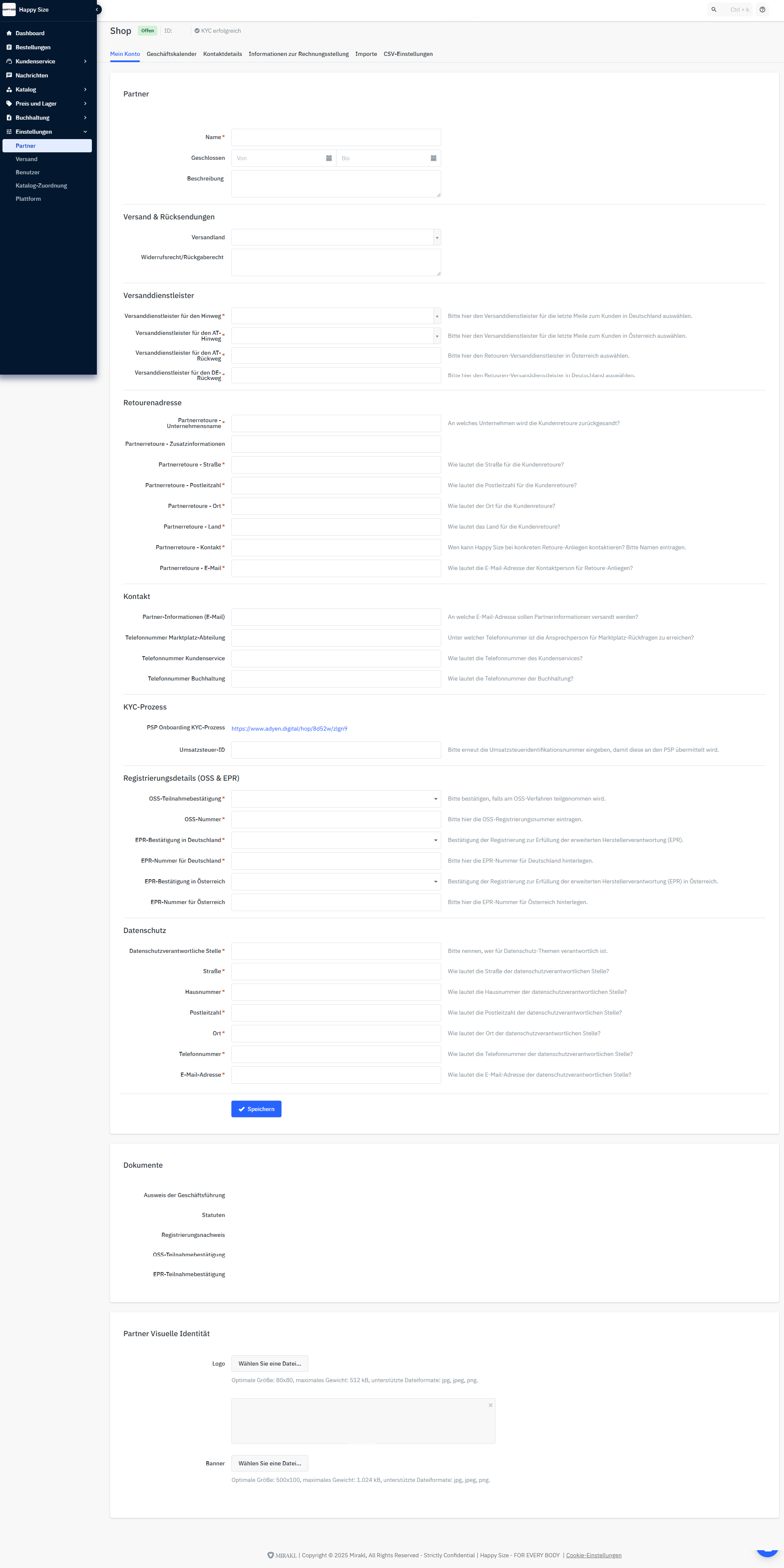 Bitte beachte, dass diese Angaben unbedingt ausgefüllt sein müssen, bevor du den KYC-Prozess beim Zahlungsdienstleister abschließt, da dieser sich die benötigten Informationen aus diesem Bereich im Backend zieht.