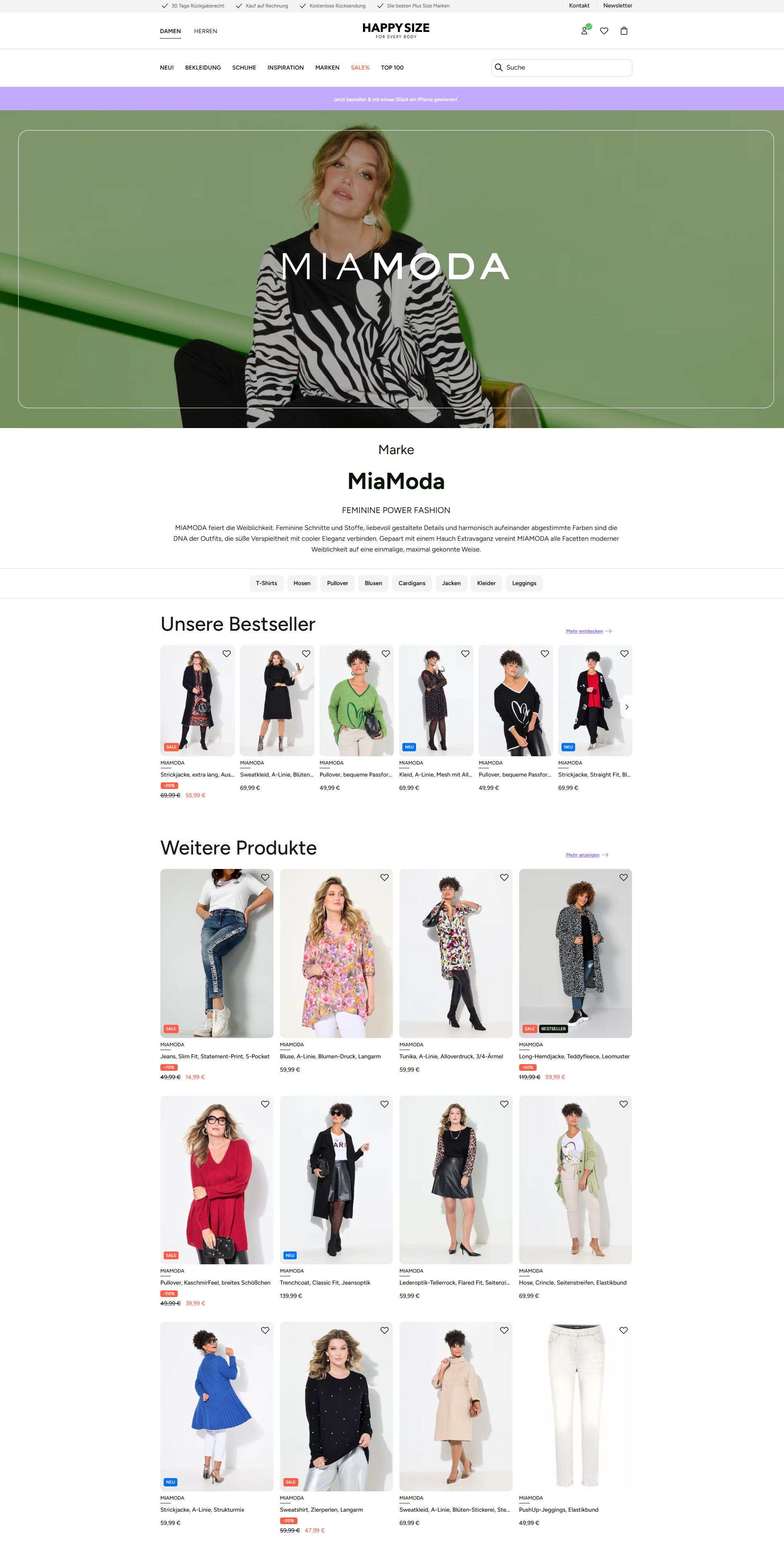 Sie besteht aus einem Head-Image, Logo, Brand Text und automatisch generierten Bestsellern und weiteren Produkten deiner Marke.