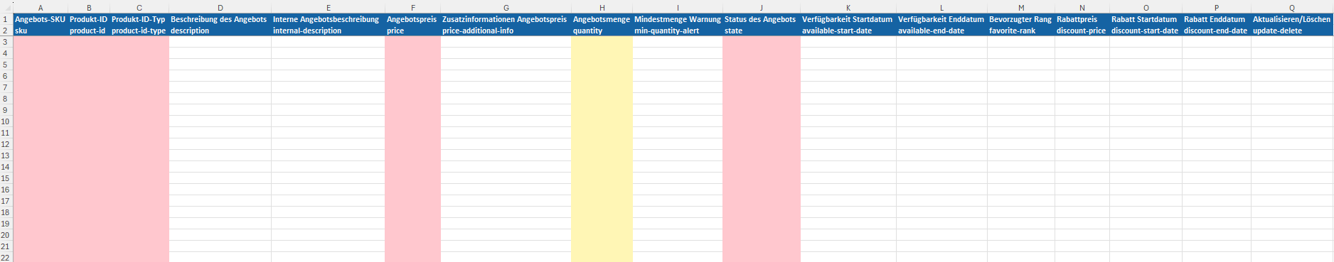 Upload von Angebotsdateien: Verpflichtende Spalten