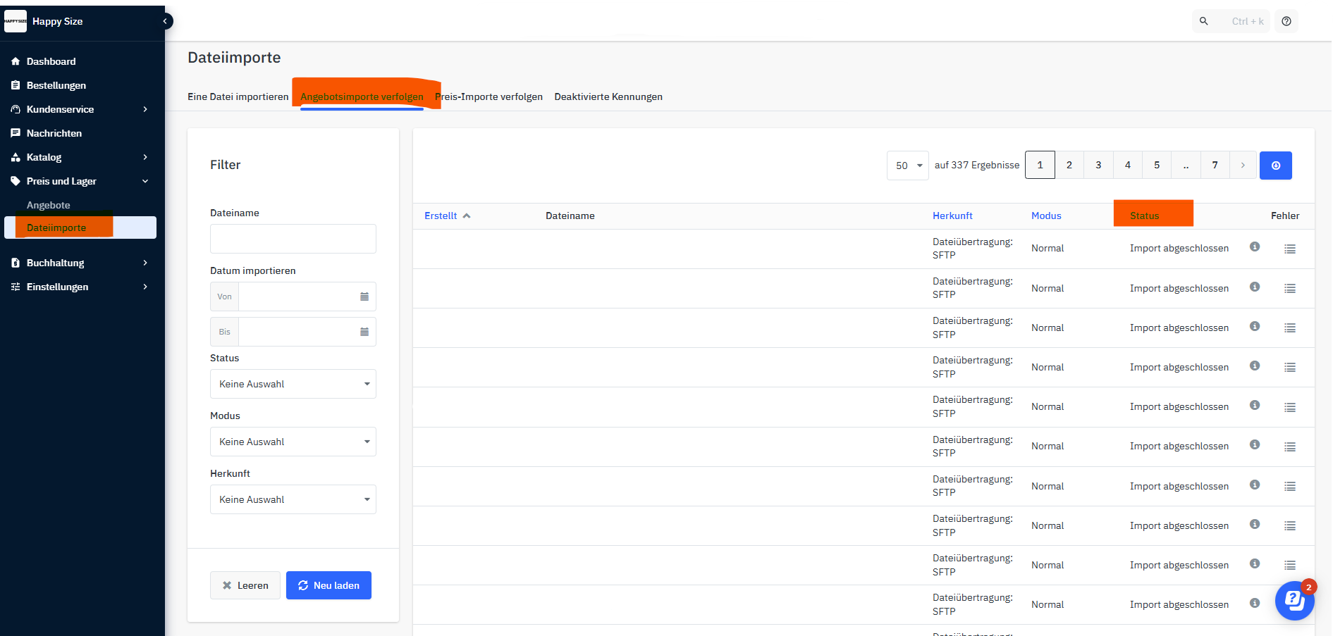 Du kannst alle Angebotsimporte (Bestand, Preis usw.) in der Schnittstelle leicht überwachen.